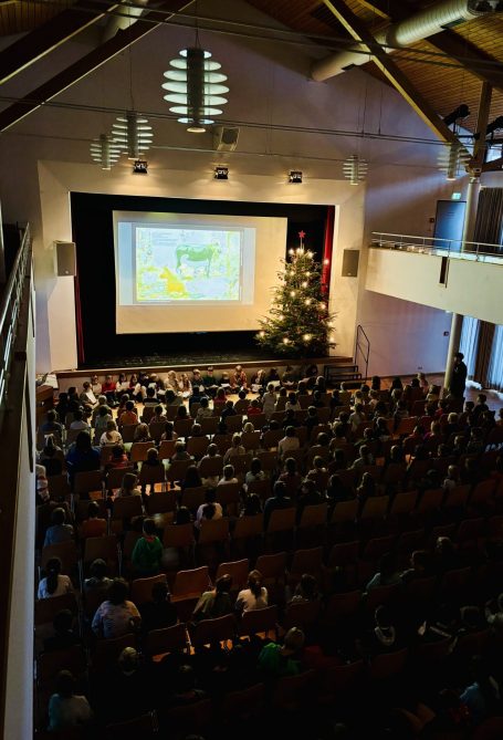 Eingeläutet wurde diese besondere Zeit mit einer gemeinsamen adventlichen Feier der gesamten Schule im Bürgersaal am 1.12.2025. Dort wurde gemeinsam gesungen, ein selbstgeschriebenes Gedicht von Frau Schlegel zum Besten gegeben und ein weihnachtliches Bilderbuch von der Klasse 3a vorgestellt. Mit dem Lied „Weihnachtswunder“ endete die Feier und alle Schülerinnen und Schüler konnten die adventliche Stimmung in ihrer Klasse weiter genießen.